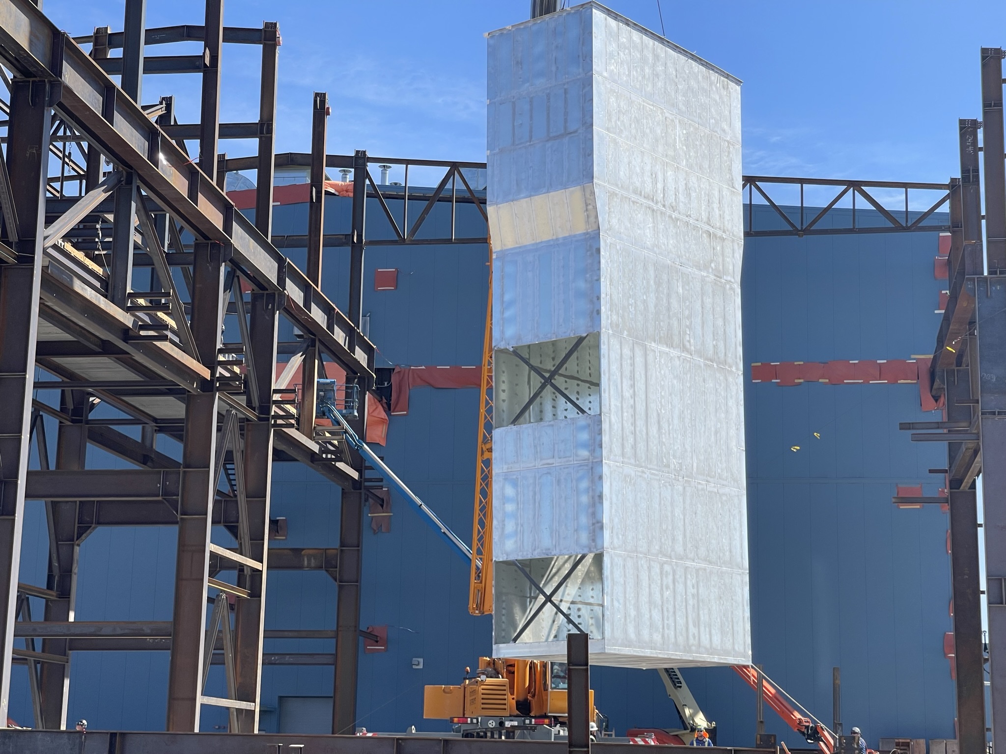 Elsewhere, larger discrepancies and logistical difficulties added pressure to the project and its timelines. When a number of the expansion’s wall and roof panels developed deficiencies, the project faced potentially significant delays, as applying their custom “Kearl blue” colour would add several months to any refabrication window.