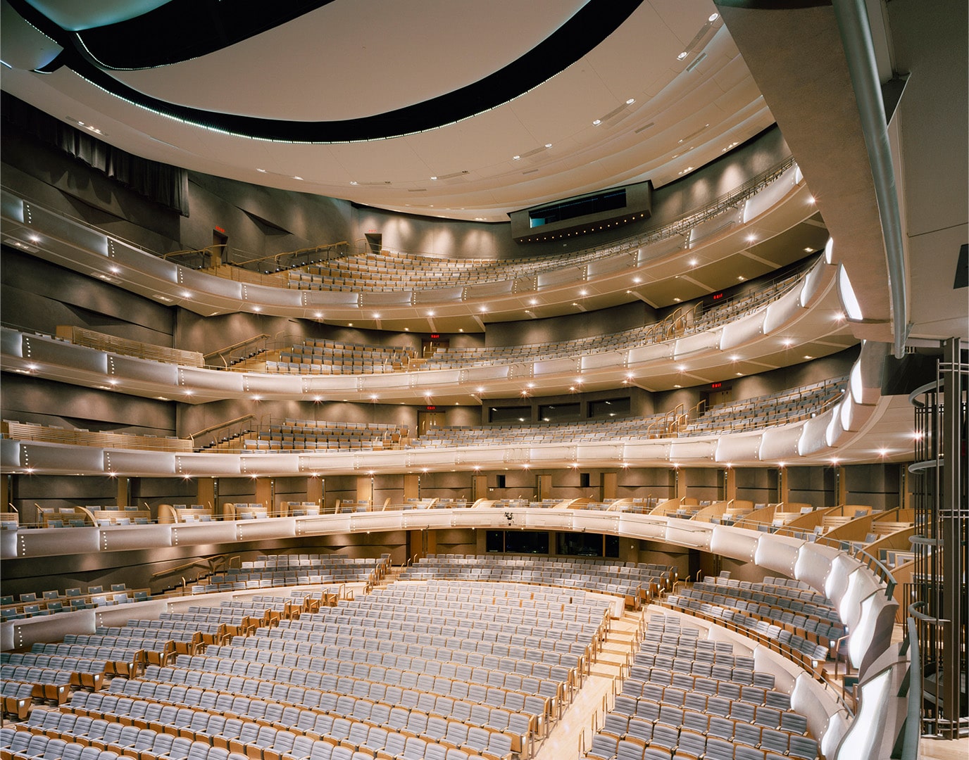 It’s showtime! This stunning opera house holds room for 2,043 patrons to immerse themselves in the highest level of acoustical excellence. The traditional four-tiered European horseshoe-shaped auditorium, lined with resonant wood and plaster, provides unparalleled intimacy between the audience and the stage, with every seat positioned for the best possible sightlines.
