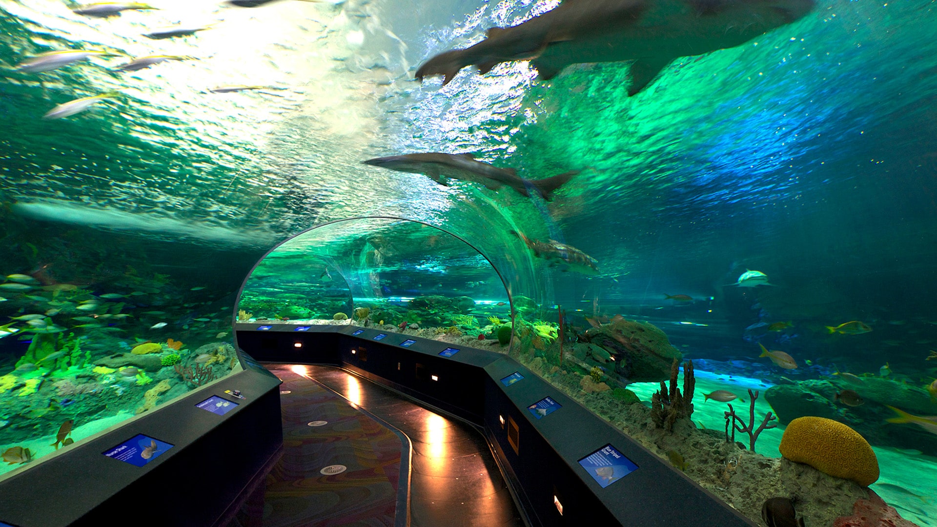 At 140,000 square feet, and with more than 1.5 million gallons of water, the aquarium features over 16,000 animals from around the world, including favourites such as sharks, jellies and green sea turtles. The facility also provides behind-the-scenes tours, areas where visitors can touch crabs and stingrays, and an opportunity to camp overnight beneath the shark tank.