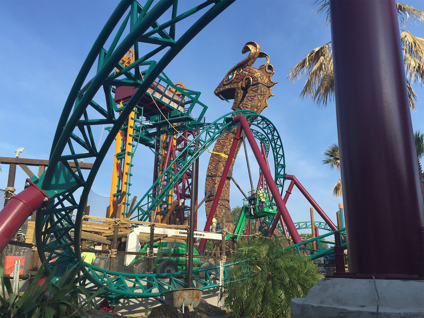 “If the site of the ride is right in the middle of the park, we can’t bring material in when the park is open,” says Palazzolo. “We also have to work to mitigate noise and other disruptions. It can be challenging, but it’s always rewarding when we’re able to continue construction without guests even knowing we’re there.”