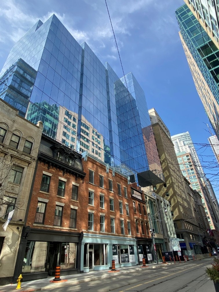 Blending history with contemporary architecture, 65 King East integrates the distinctive brick façade of five existing buildings with the elegant design of the curtain-wall exterior. The revitalized heritage façade maintains the original structure’s history while helping the client repurpose its assets for new use.