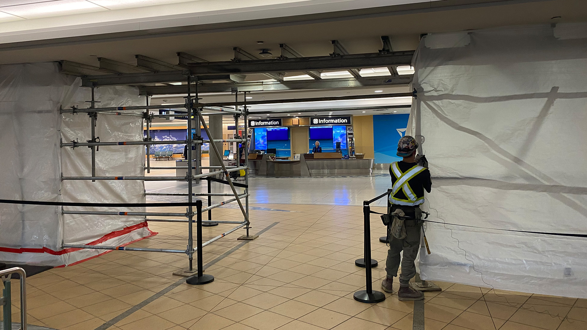 When dealing with aging infrastructure, it's not uncommon to find surprises that can lead to schedule disruptions. Case in point: the team discovered that sections of the structural ceiling slab below departures needed to be replaced. This discovery could have set the project back by a couple of months, but the team was able to design scaffolding that safely supported the ceiling. That enabled the temporary relocation of existing mechanical ducting without requiring any demolition.