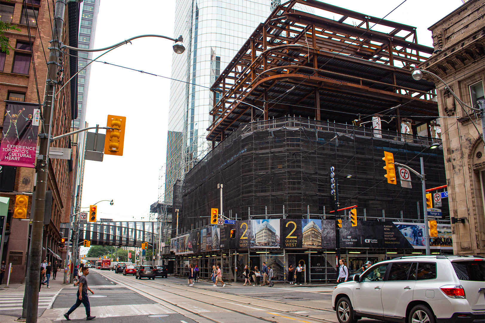 Almost 125 years ago, 2 Queen played a large role in defining Queen and Yonge as the famous retail junction it is today. While a modernization was always in the cards, maintaining the building’s rich history has remained priority number one. Now, after recently achieving 2 Queen’s structural topping off milestone, PCL is halfway to making it a reality.