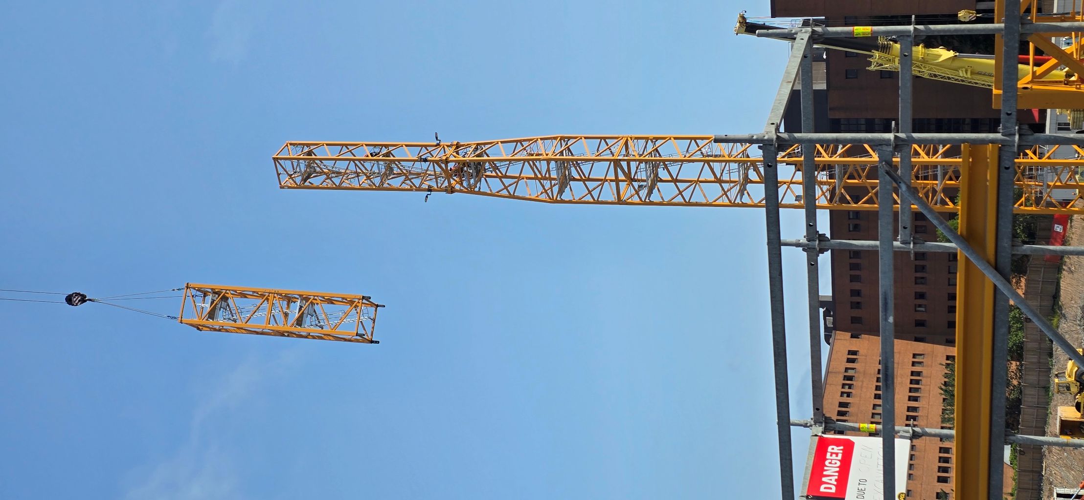 The challenge was the height. With a 14-story tower and three other cranes, the highest — known on the site as TC1 — had to go higher than freestanding cranes normally reach.