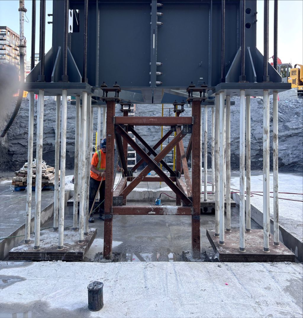 “The solution required increasing the hole size by just a couple of millimeters,” says Keith Donnelly, a superintendent responsible for carrying out the plan to erect TC1. “So it’s a very small amount, but we had to get approval from the crane manufacturer in Germany, to ensure the North American steel rods could be installed, so there was quite a bit of back-and-forth, and thankfully it all worked out.”