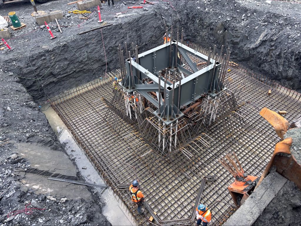 “It’s a lot more complicated than a typical anchor stool,” says Brad Kelly, the superintendent who oversaw the installation of all four cranes. “TC1 had a significant level of additional reinforcement that the other three didn’t need. It’s more specialized and took a lot more time and effort for field management to coordinate.”
