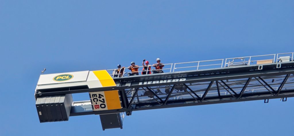 Before this project, the tallest freestanding crane PCL had ever erected was 100.3 meters, during construction of the Arthur J.E. Child Comprehensive Cancer Centre in Calgary, between 2017 and 2022.
