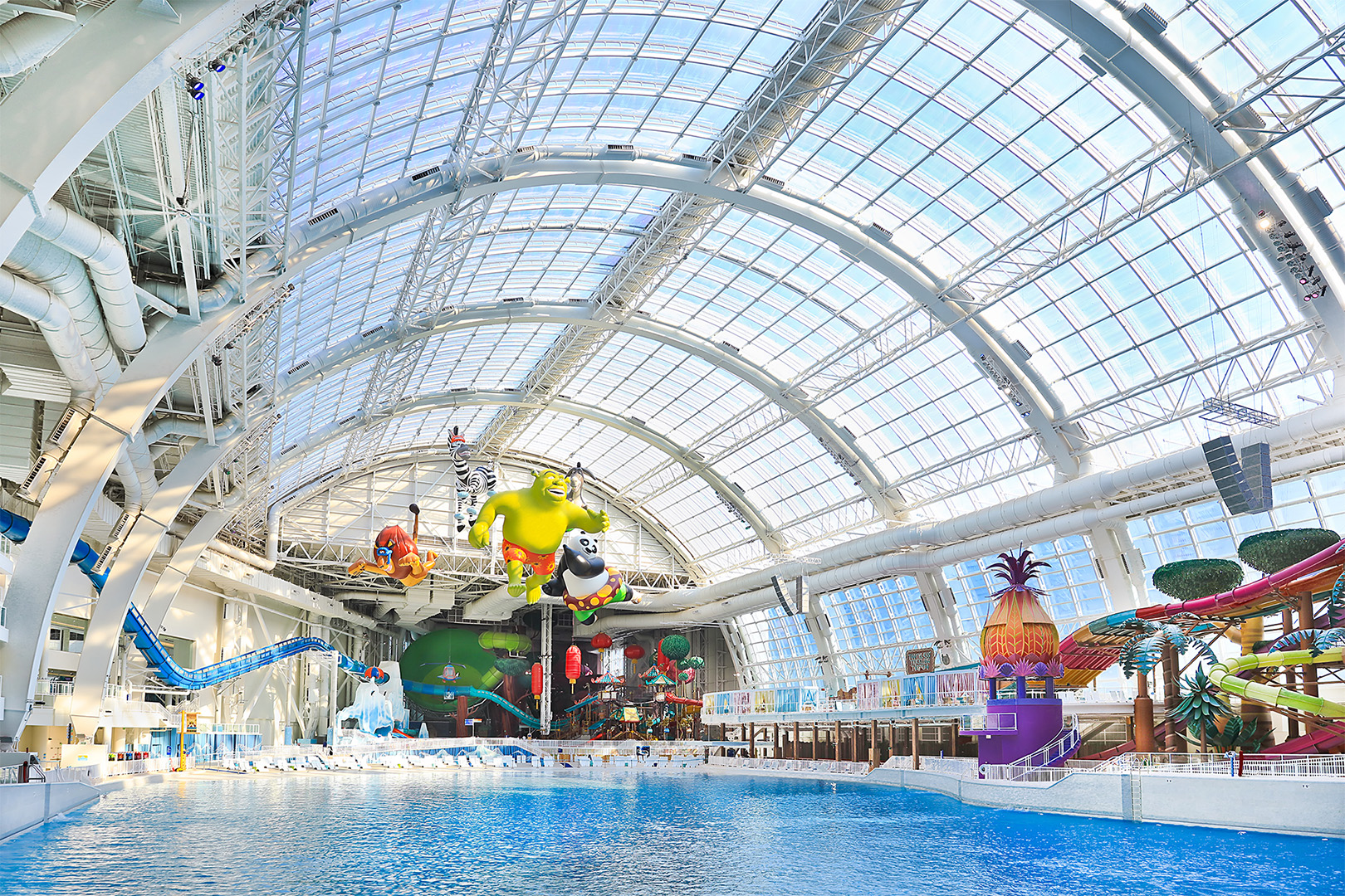 Those seeking an endless summer can find year-round entertainment at the Dream Works Waterpark, the largest indoor waterpark in North America. A main attraction of the American Dream mall in East Rutherford, New Jersey, the park features 33 slides (including the 2nd tallest speed slide in the USA), a surfable wave pool, lazy river, roller coaster slide, surfing machine, spas and swim up bar. Visitors also are treated to stunning views of NYC.