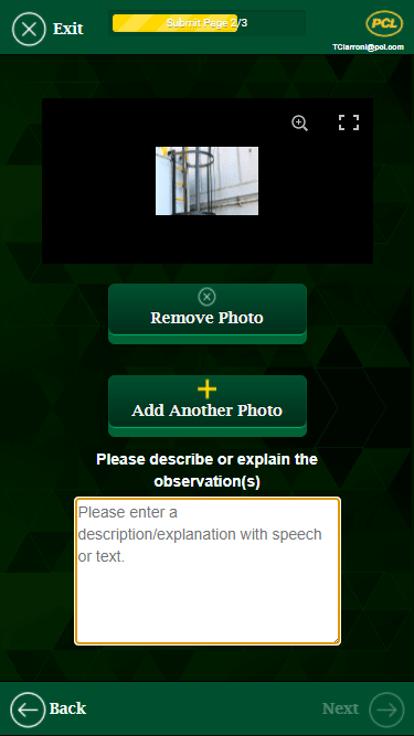 “It’s as simple as pulling out your phone, snapping a photo and entering it on the go,” said Alex Madrid, HSE supervisor with PCL’s U.S. Civil Infrastructure Division. “It saves everything automatically and there’s no chance of forgetting it. Submit it and boom – it’s in the cloud.”