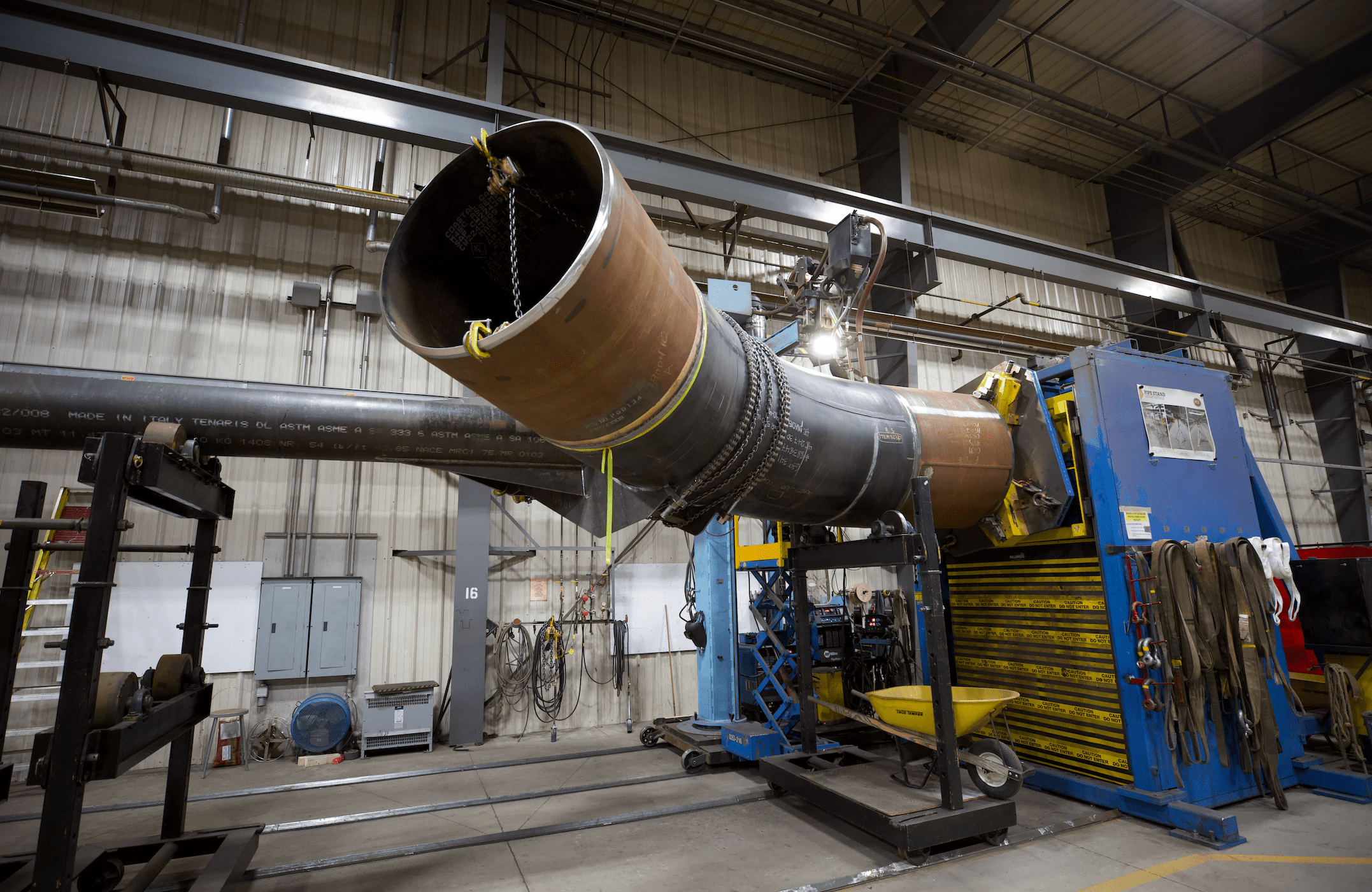 Traditionally, when welding elbows onto small-bore pipe, rotational pipe positioners are used to spin the elbows during welding. This technique, however, had never been used for pipe elbows of the considerable size and weight TC needed.