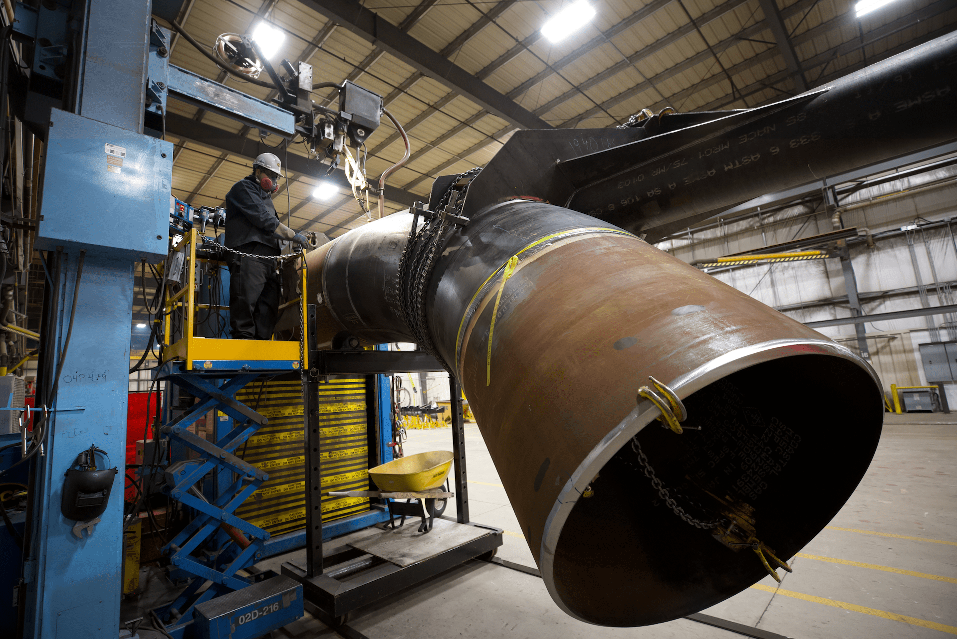 “Being able to roll 48” welds allows the shop to execute the work a lot more safely,” says Mendes. “Welders aren’t on their hands and knees in uncomfortable positions for hours. Instead they’re on subarc welding positioners with proper ergonomics.”