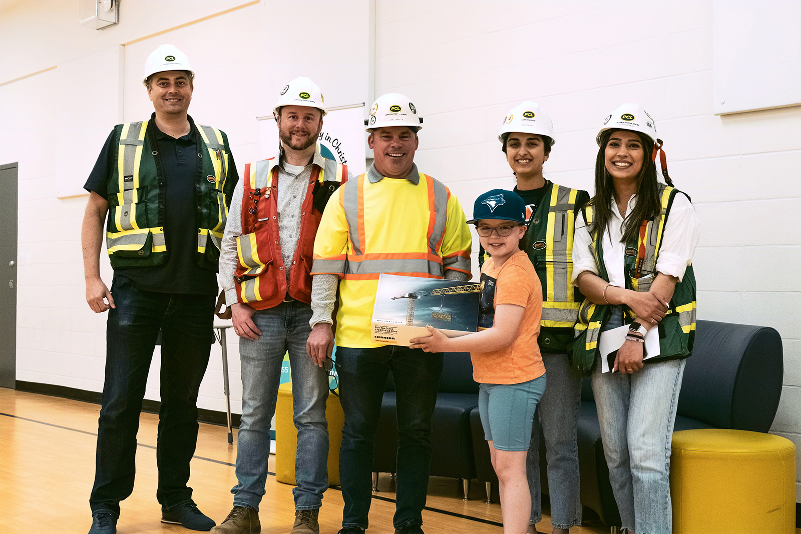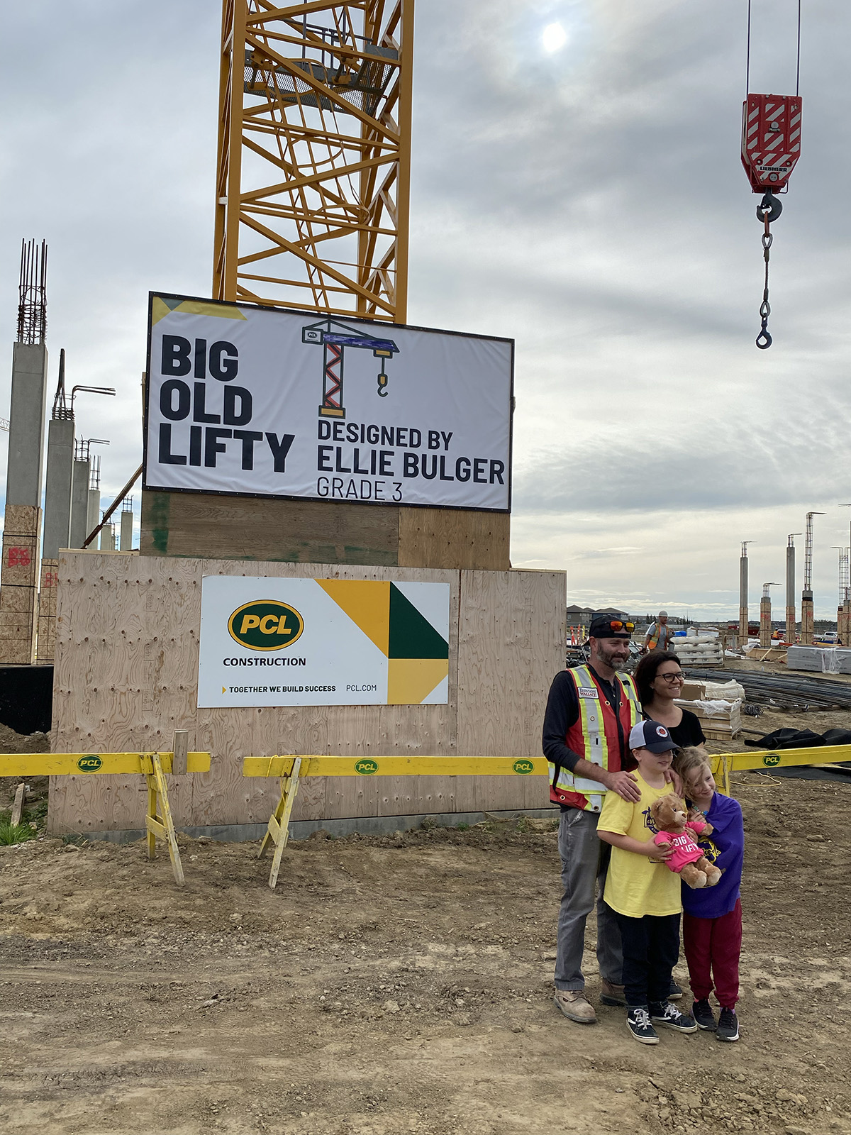 The top two crane names chosen were “Big Old Lifty” named by Ellie, a third grader at Bishop David Motiuk, and “Lemon Squeezer” named by Evie, a fourth grader from Winterburn. Both winners received tower crane models, which are exact replicas of the cranes on-site, donated by Liebherr Tower Cranes, and gift cards to the LEGO Store. The winning names will now be printed at the bottom of each tower crane for the duration of the cranes’ use on the project.