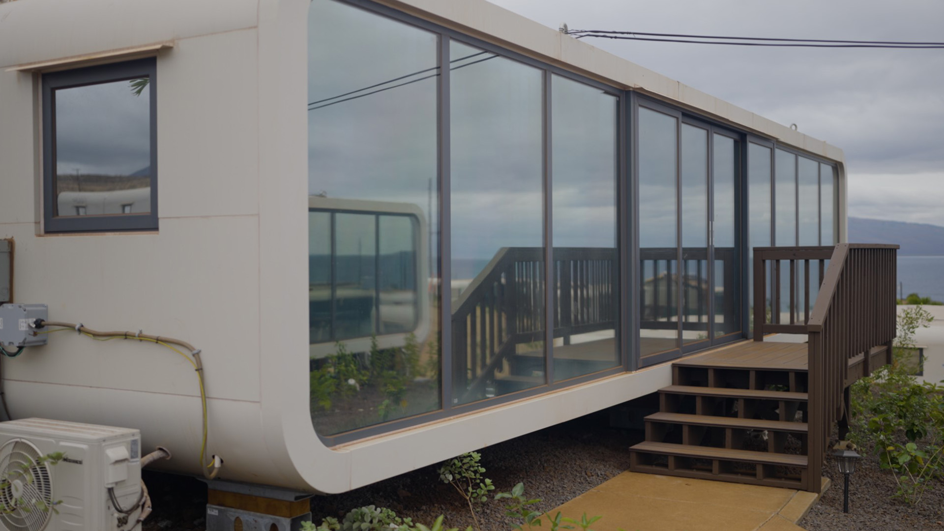 Funded by the State of Hawaii and various nonprofit partners, and developed by the nonprofit HomeAid Hawaii, Ka Laʻi Ola spans 57 acres in West Lahaina. It features one-, two- and three-bedroom modular units, each equipped with a kitchen, bathroom and living area. These compact modern pods, with expansive glass walls, offer a bright environment for those on the path to recovery.