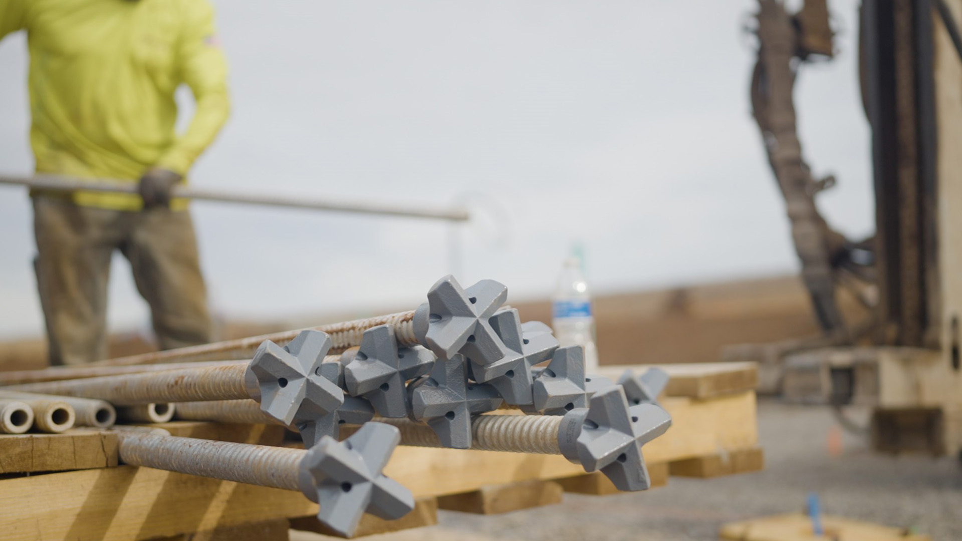 While installing the module foundations, Nordic PCL crews encountered a major problem that had to be resolved before they could secure the foundations in the ground. The State had purchased pre-constructed foundations designed to be installed in medium-dense silty sand. However, the metal foundation pins bent quickly when hammered into the ground at an angle, striking the hard basalt beneath the soil.