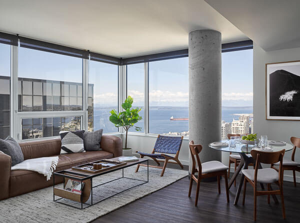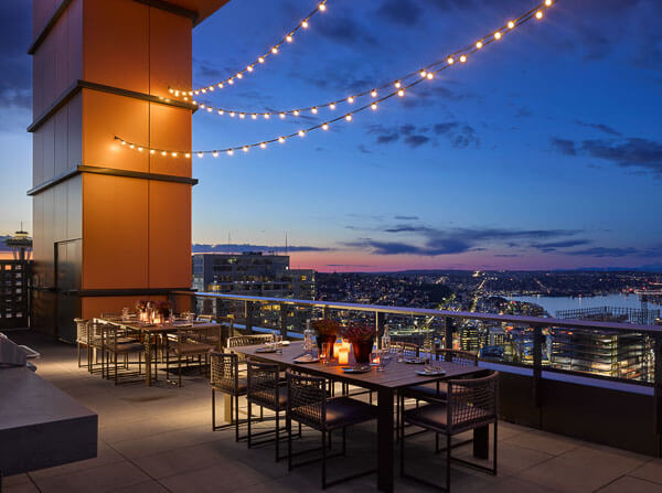 Nestled in the heart of Belltown, one of Seattle’s most vibrant and growing neighborhoods, stands the 43-story Arrivé Tower featuring 344 residential units, The Sound Hotel, a full-service restaurant, a grab-and-go coffee bar and Currant Bistro. The tower—the first of its kind in Seattle to combine the luxury of a hotel and the privacy of residences—features breathtaking views of Puget Sound and Mt. Rainier. The Sound Hotel, its name an homage to the musical history of the Seattle area, is located minutes away from Amazon Worldwide headquarters, Pike Place Market and iconic Seattle retailers like REI and Nordstrom. The high-rise living units, located above the Sound Hotel, offers residents elevated design and high-end finishes like private terraces, walk-in closets, and smartphone-controlled technology. Residents also have access to amenities, including an outdoor entertaining and barbecue area, a dog-walking and grooming area, a yoga studio, and a state-of-the art gym.