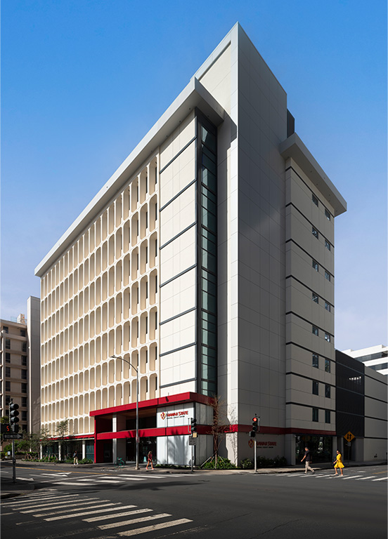 - Renovation Award: The new 10-story Hawaii State Federal Credit Union headquarters located in Honolulu was renovated to emphasize customer service efficiency and employee wellness, featuring ground-floor retail and a five-story parking structure serving the downtown community.