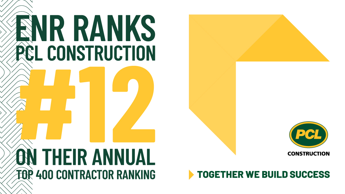 Denver Colorado (June 2, 2022) – PCL Construction is one of the top-ranking general contractors in the U.S. by construction billings, according to Engineering News-Record’s (ENR) annual Top 400 list. With reported billings in 2021 of more than $6 billion USD ($7 billion CAN) – a 6 percent increase year-over-year – PCL rose two spots to reach No. 12 on the list.