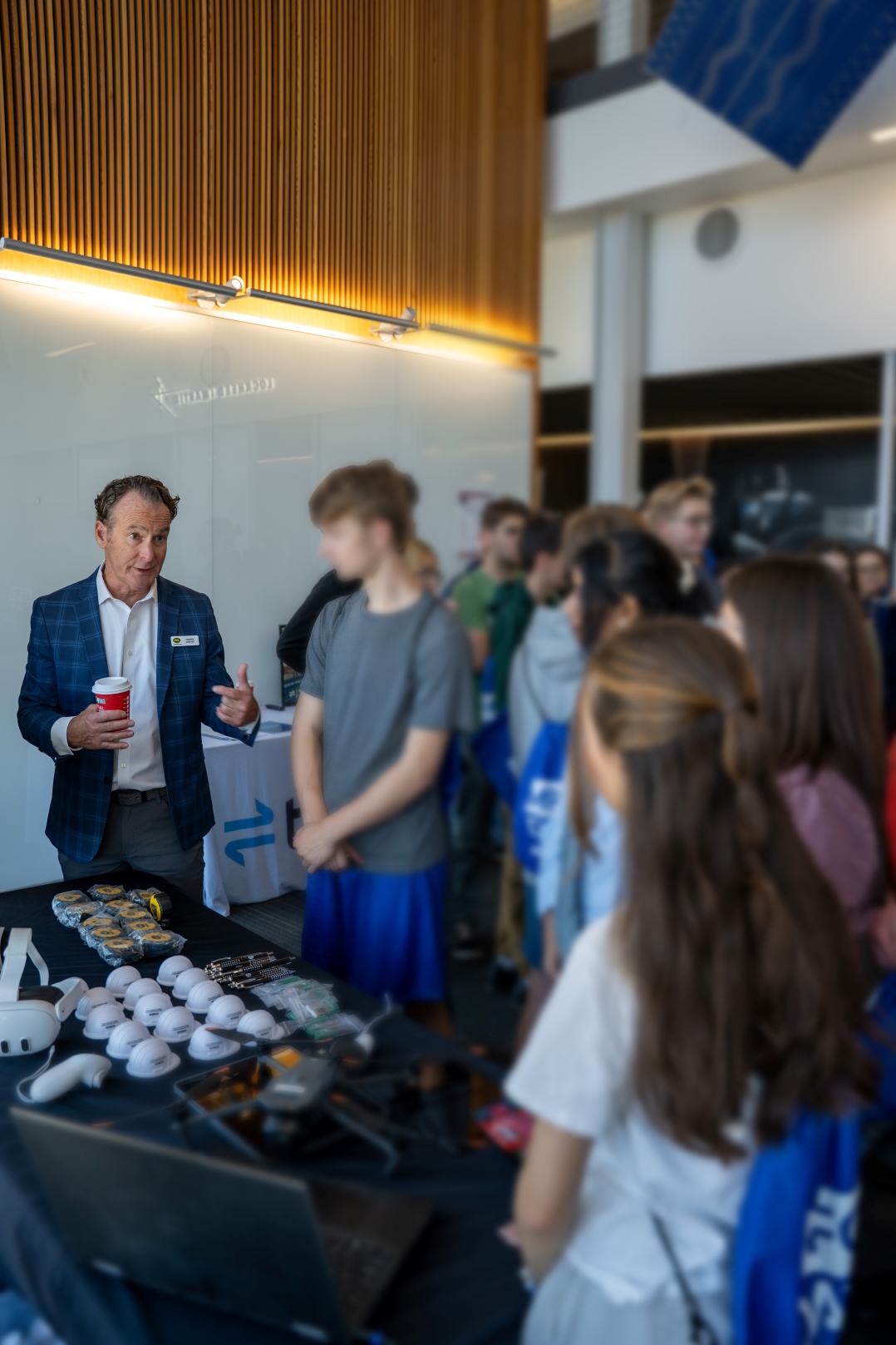 At the event, PCL showed drone footage from jobsites to showcase how the technology is used to scan, map, and document project progress throughout the lifecycle. Students used a tablet connected to a 3D scanner to see how the scanner could produce renderings of their surroundings in real time. Attendees also used Oculus goggles to experience how virtual reality is applied on jobsites across North America.